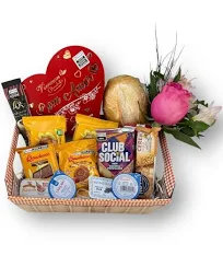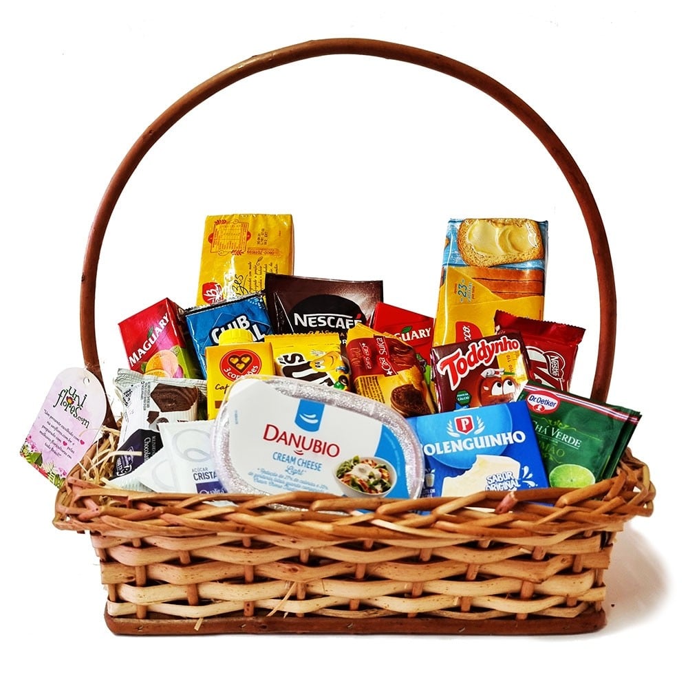 Nada melhor que uma Cesta cheia de delicias para surpreender alguém. Composta por 4 diferentes tipos de queijos, 2 tipos de pães e 2 tipos de frutas, frescas e saborosas. Acompanha 2 taças médias e uma garrafa de Vinho Tinto de 750ml.